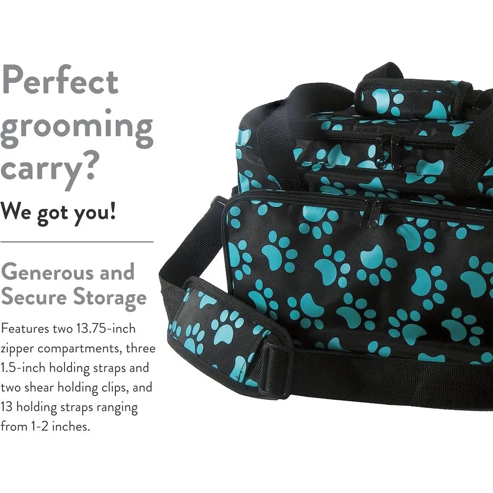 Storage Bag with Multiple Pockets: Three interior pockets keep grooming essentials organized while four exterior pockets (two zippered, two slip) keep shears and brushes handy