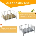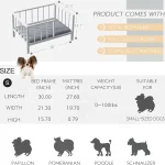 Discover the perfect elevated dog bed designed to provide comfort and durability for your small pet. This bed features a sturdy metal frame with solid wood board and washable soft mat, ideal for year-round use. Key Features: – Elevated Design: Keeps your pet off the ground to prevent coldness and dampness, ensuring a cozy and clean sleeping environment in all seasons. – Sturdy Construction: Made from thick metal pipes and solid wood, this bed is strong and chew-resistant, built to last through daily use. – All-Season Comfort: The reversible mat includes a breathable rattan side for summer warmth and a soft coral velvet side for winter coziness; both sides are easy to wash. – Easy Assembly: Comes with clear instructions and tools, allowing quick setup within minutes without hassle. – Perfect Size: Measures 54x76x40 cm (frame) with a 50x70x2 cm mat, suitable for pets up to 10 kg, making it versatile for indoor or outdoor spaces. Benefits: This elevated dog bed offers enhanced security with its rail design, promoting peaceful sleep while protecting your pet from floor hazards. Its durable materials ensure long-term reliability, saving you money on replacements. The washable mat simplifies maintenance, keeping your home tidy. Ideal for small dogs or cats seeking a comfortable retreat.