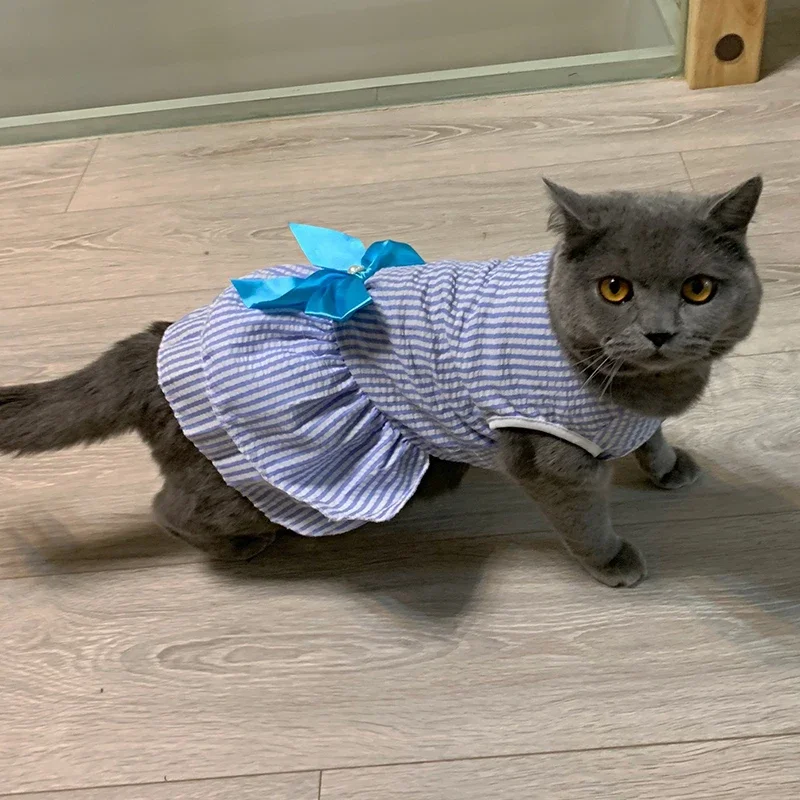Summer Pet Cat Puppy Princess Dress Pet Clothes Striped Plaid Dresses with Bow Cats Kitten Rabbit Sphynx Clothing Pet Supplies